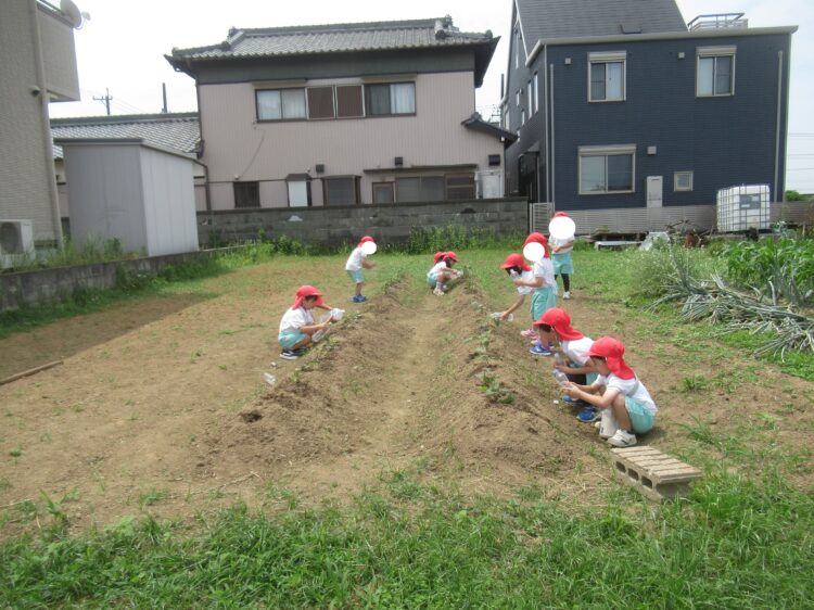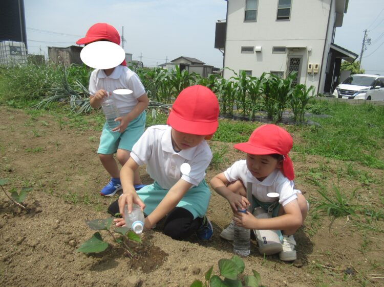 畑に行き水やりをしました葉っぱも元気で良かったね