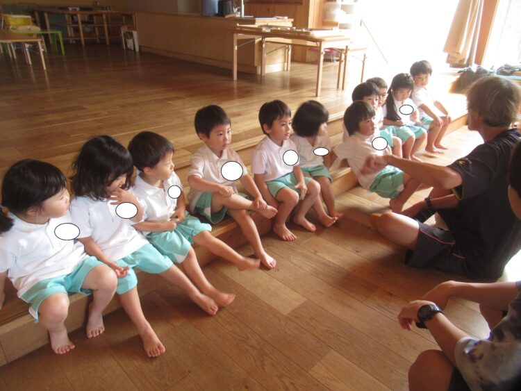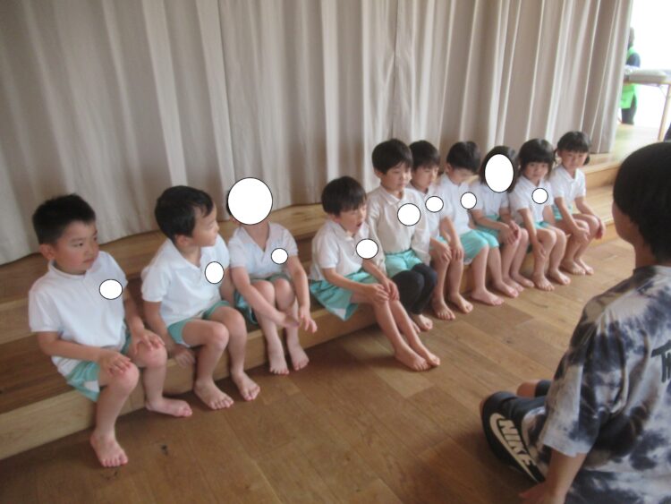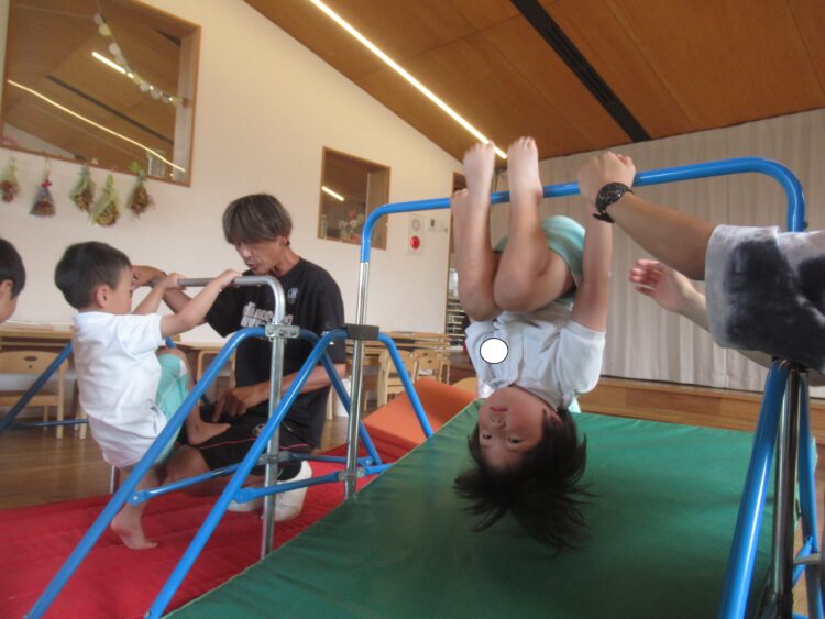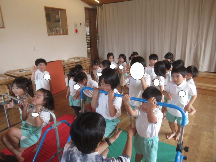 鉄棒の上に顎を乗せながら足をあげる姿勢をキープ!