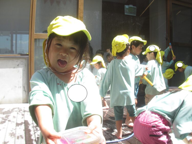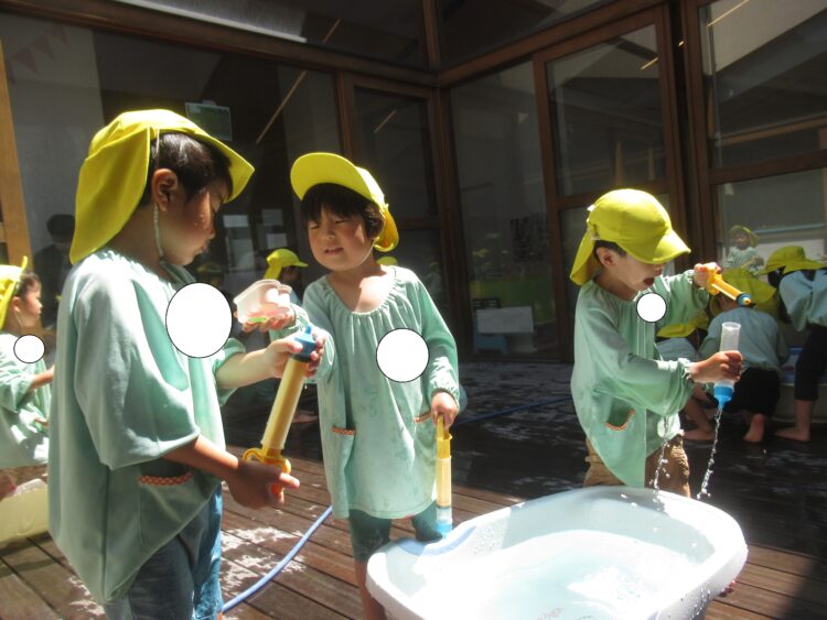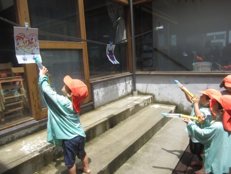 水鉄砲や金魚すくい、体に水をかけて気持ちよさそう!