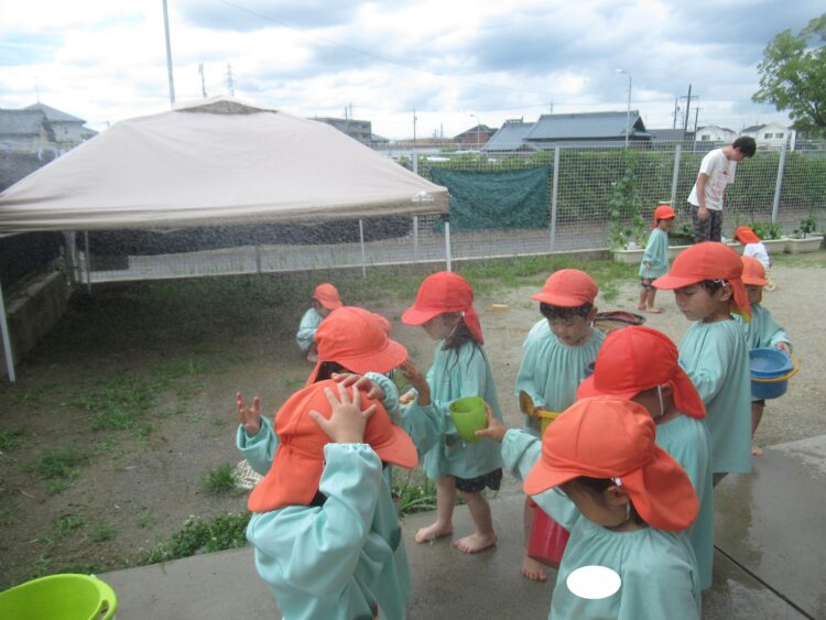 「つめたい!!」とシャワーを楽しんだりしていました![]()