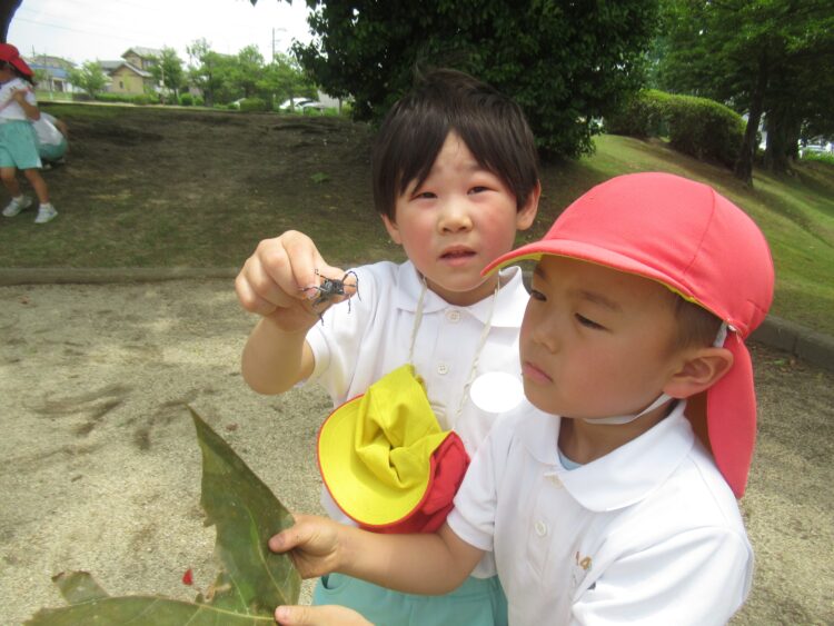 公園に寄り道をして、カミキリムシをみつけたようです![]()