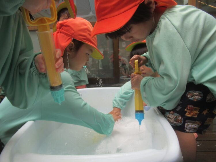 今日も泡と水で、いろんな楽しみかたを見つけていましたよ😊