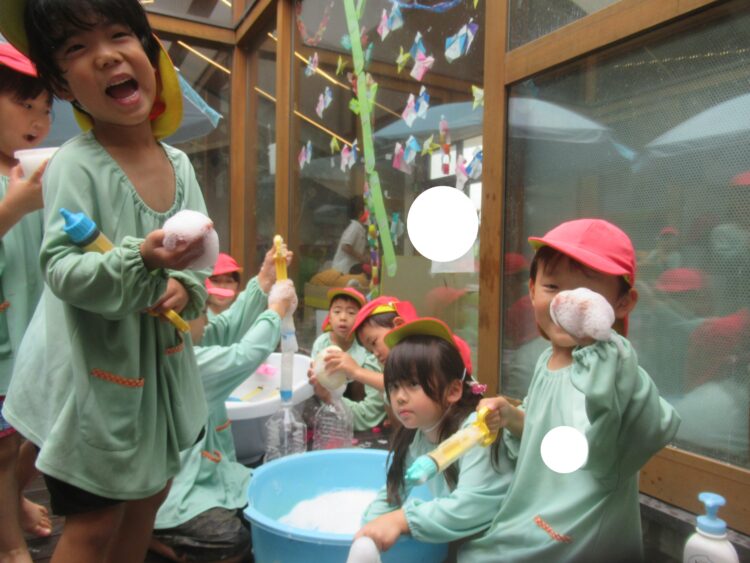 身体をしっかり動かした後、順番に水遊びをしました![]()