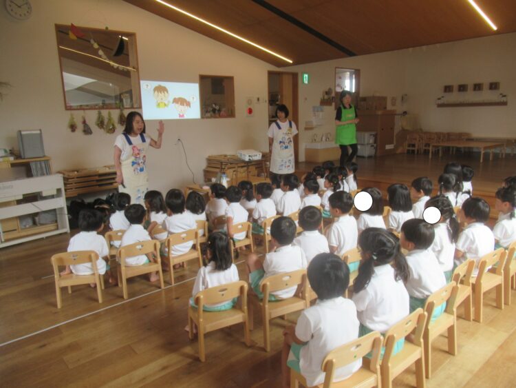お歌に合わせて手をゴシゴシ「おねがいおねがい♪かめさんかめさん♪」
