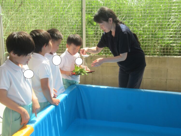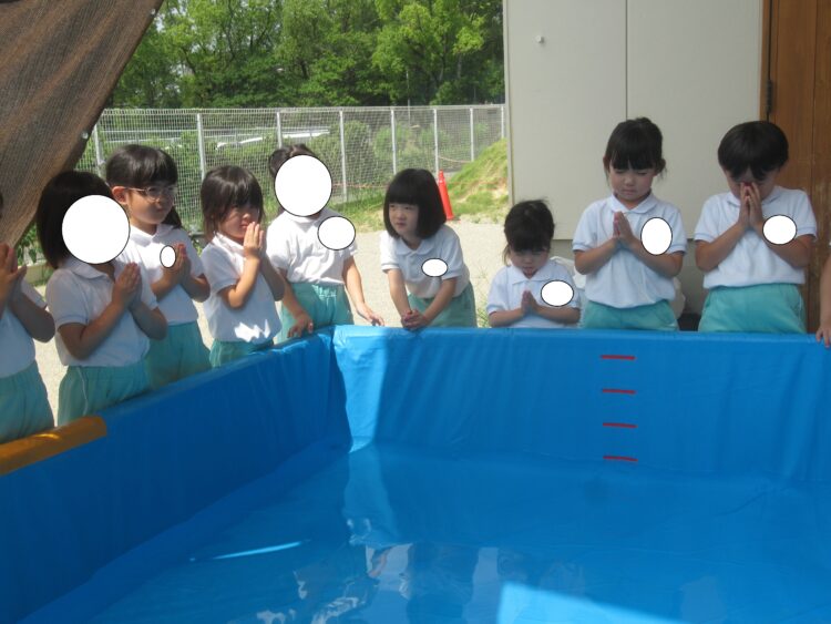 みんなでプールに向かって手を合わせます。