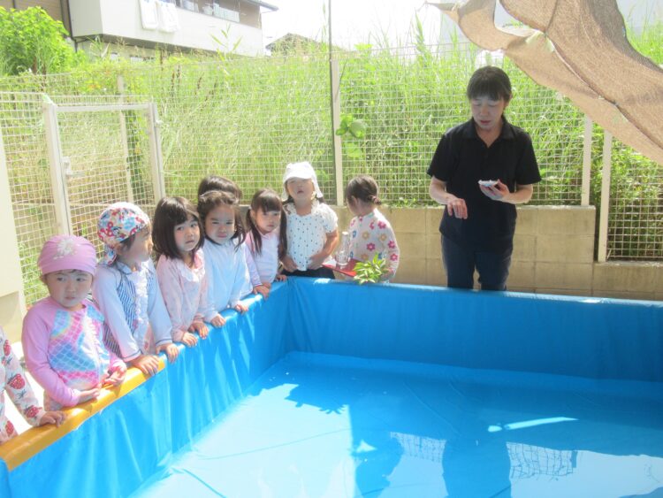 お話しを聞いた後は、【プール開きの儀式】をしました!