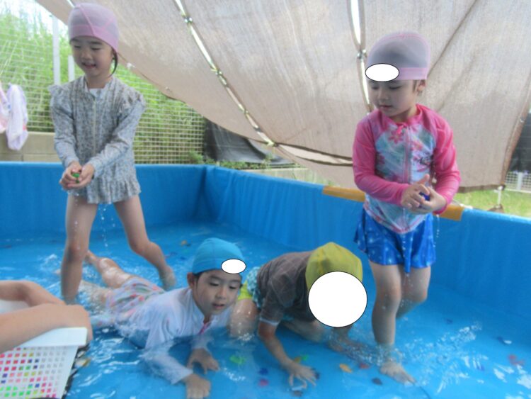 今年最初のプールは、宝石探しやワニさん歩きをして楽しみました!