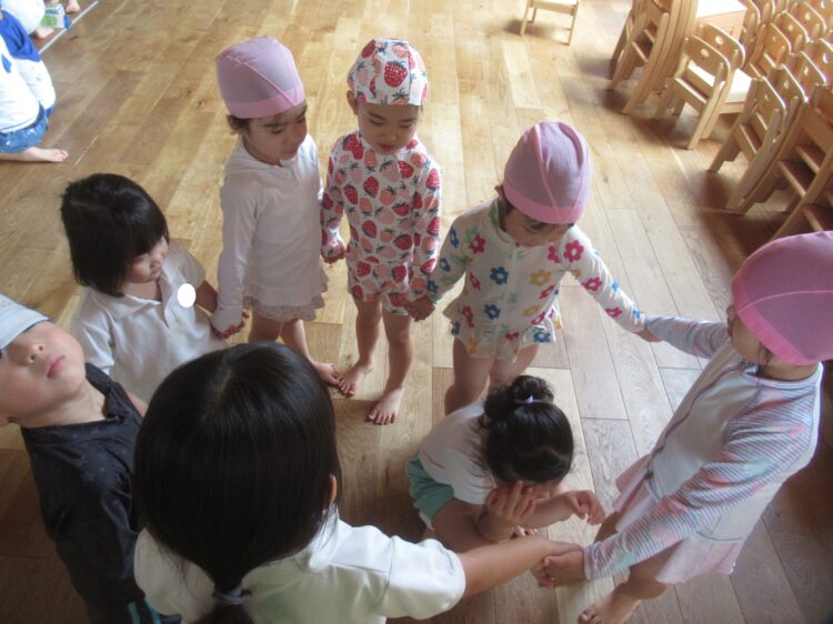 わらべうたを歌いはじめると、いれて~いいよーといいながら、少しずつ輪が大きくなっていましたよ!たのしかったね![]()