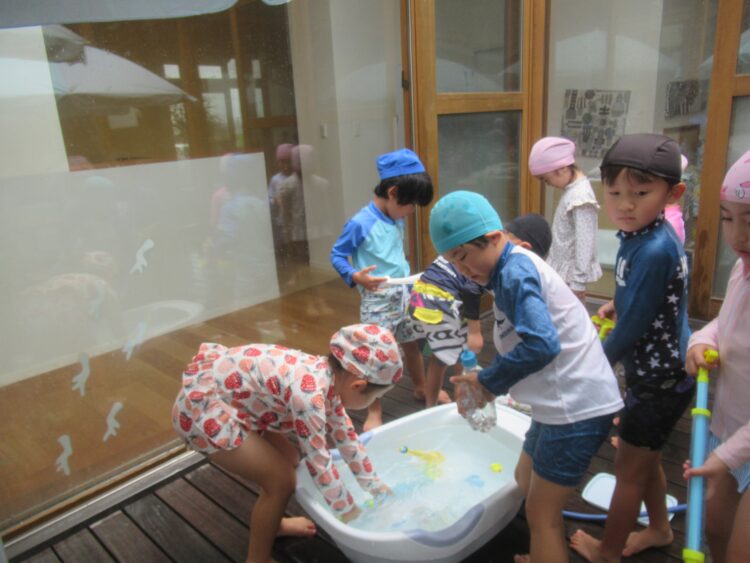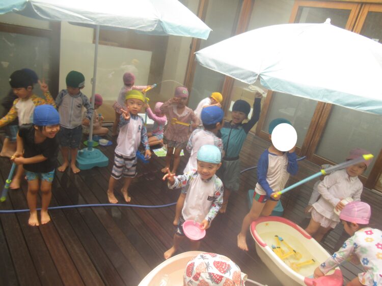 中庭では水遊び![]()