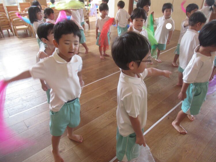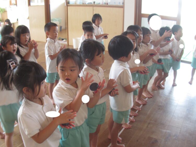 「うみ」の歌に合わせてカスタネットをたたきました![]()