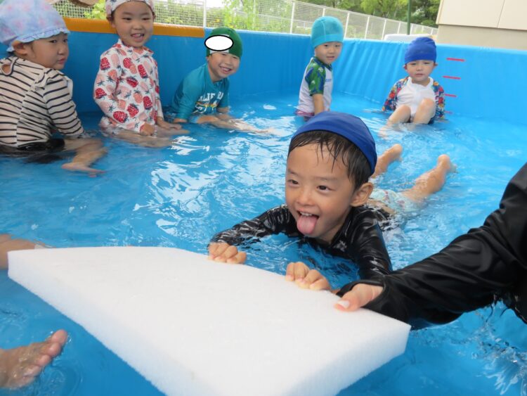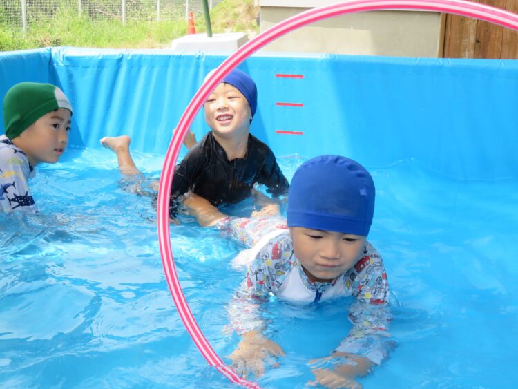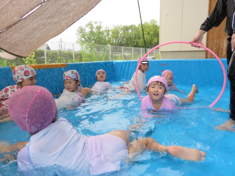 フラフープの中をくぐったり、ワニさん歩きをして大はしゃぎ!
