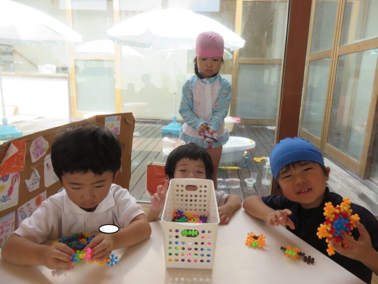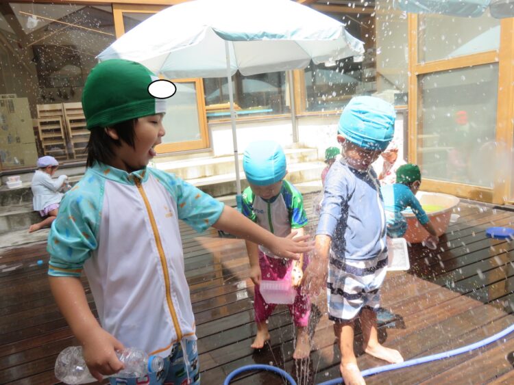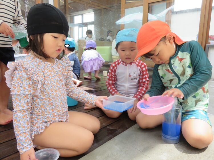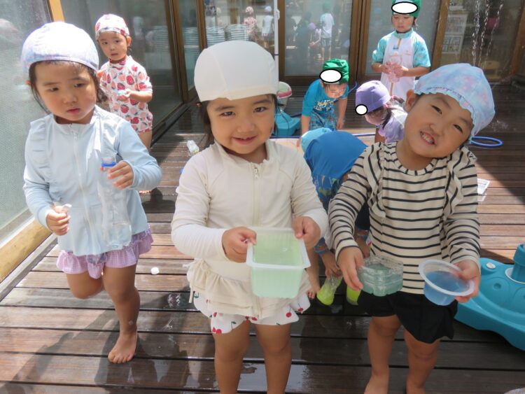 水遊びでは、水鉄砲や色水遊びをしましたよ!