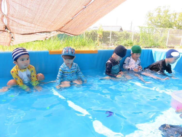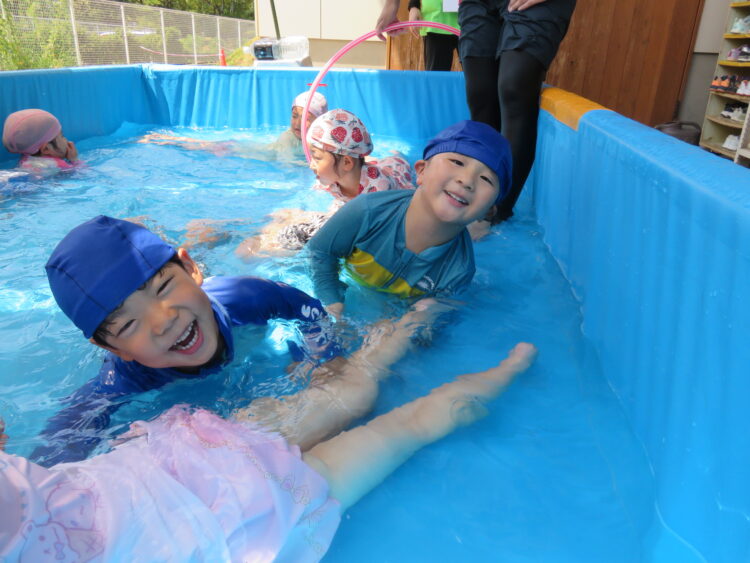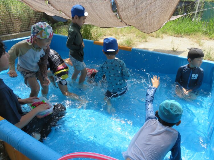 今日も暑い日になりましたが、大好きなプール遊びに子どもたちはノリノリ
