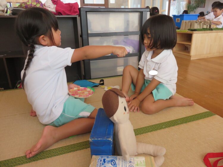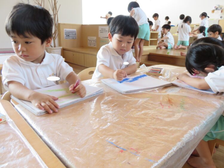 お部屋ではお絵描きやブロック、おままごとなど友だちと一緒に好きな遊びを楽しみました