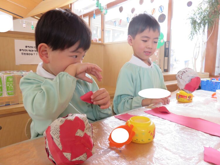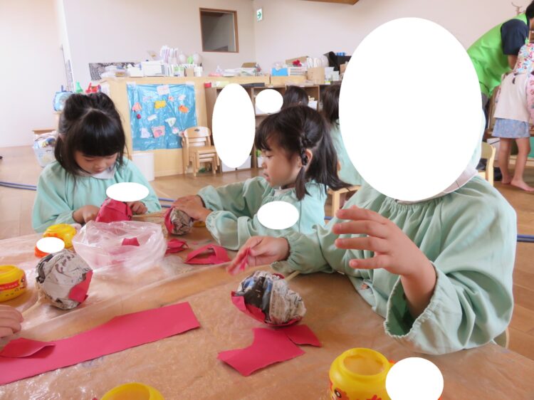 お部屋ではきらきらさんが昨日に引き続き製作を行っていました🍎