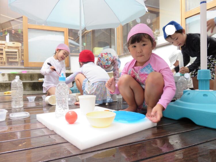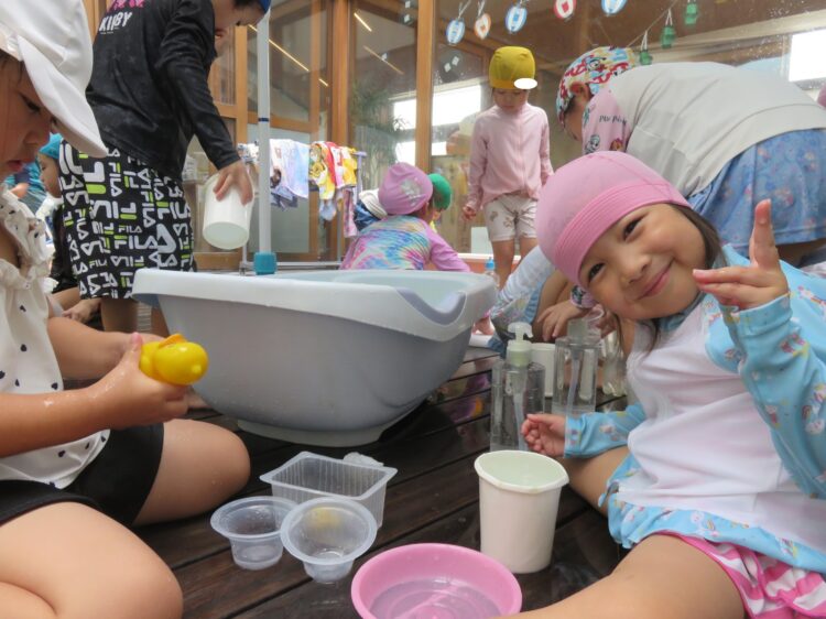 中庭では水遊びをして涼を味わう子どもたちがいました✨
