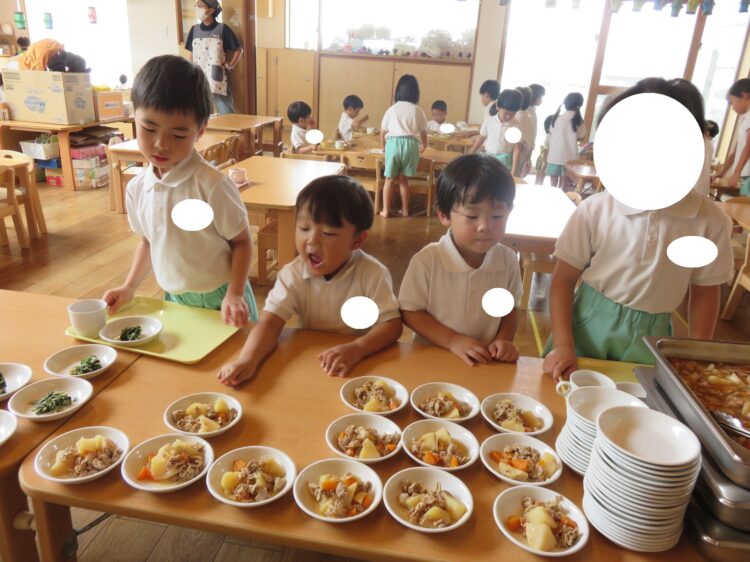 今日の給食は「わかめごはん、肉じゃが、ほうれん草の和え物、わかめとあげのみそ汁」でした🍚