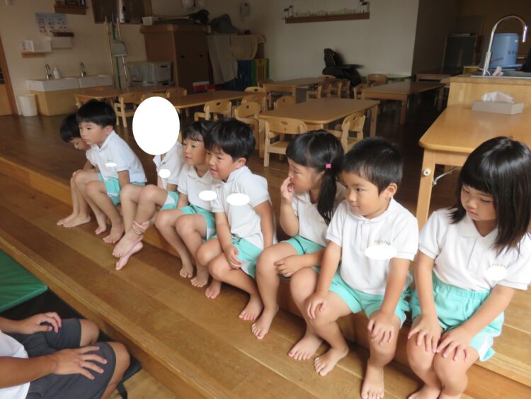 先生の話をしっかり聞いて、見本をよく見ていますよ。