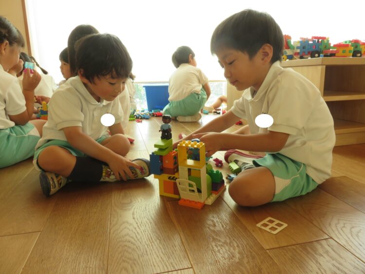 ブロックコーナーでは、お友だちと協力してお家を作っていました!![]()