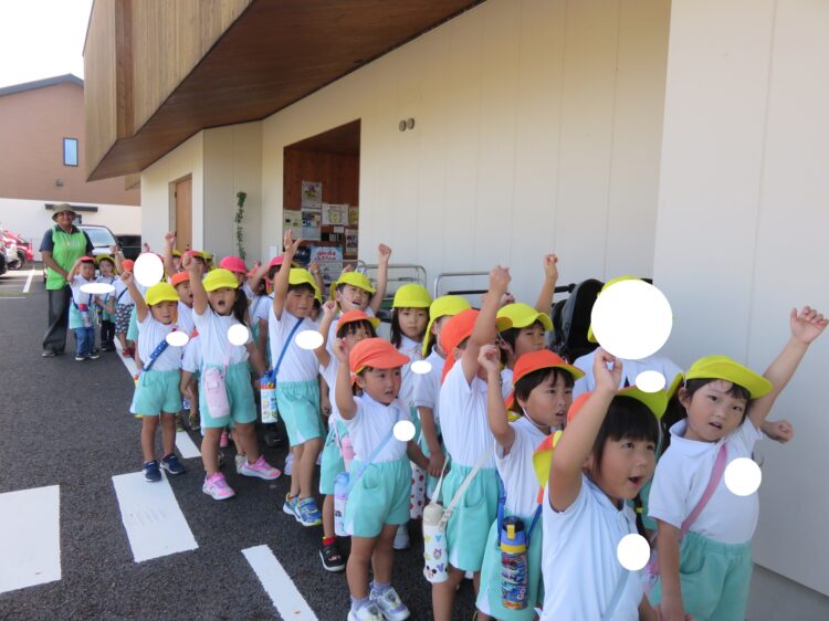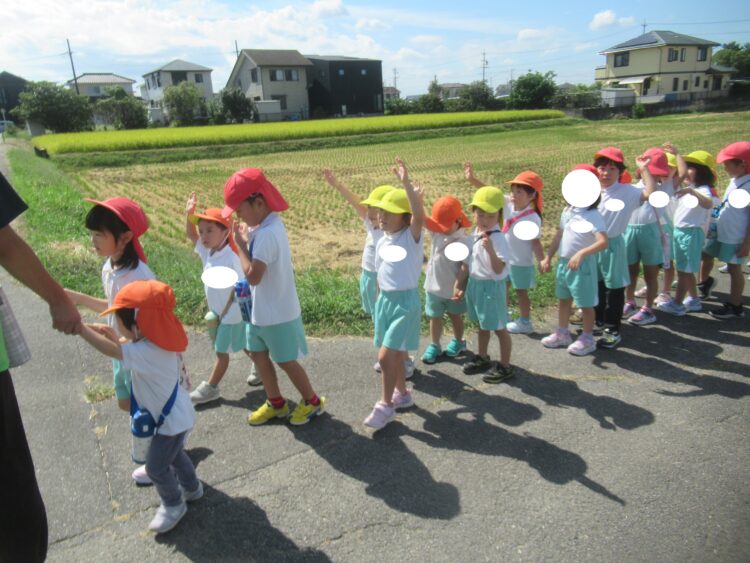 お散歩チームは左右の安全確認や、しっかりと手を挙げてから道を渡っていました![]()