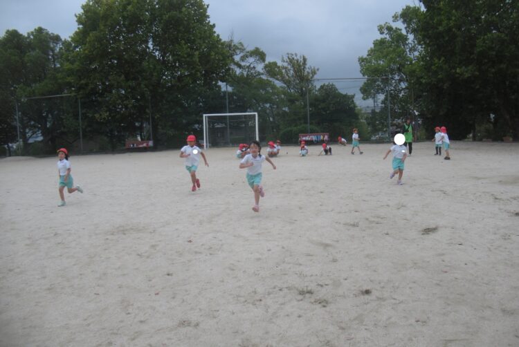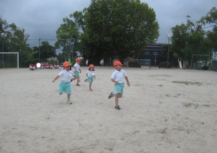 公園では運動会に向けてかけっこをすると、早く走りたくてうずうず
