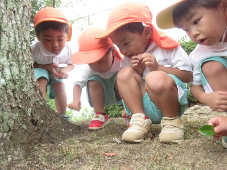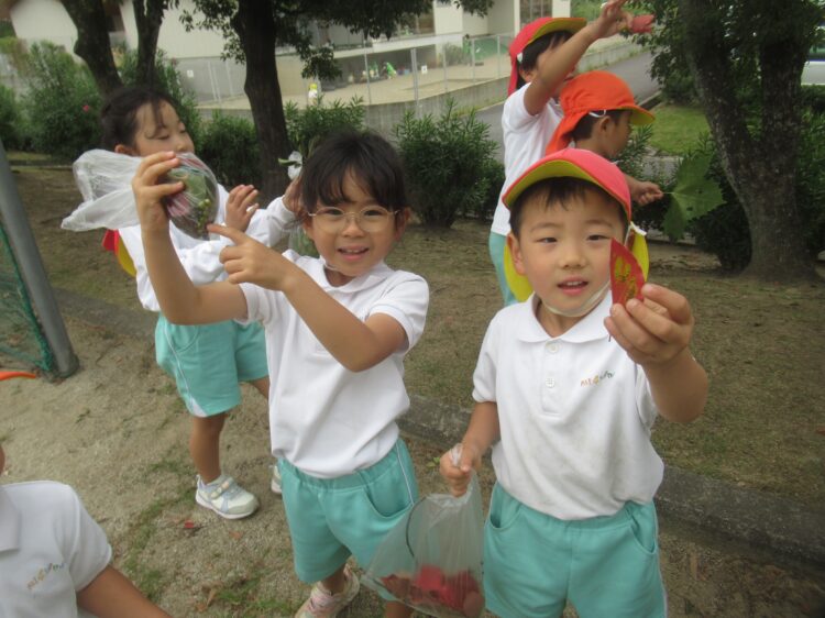 昨日に続き、落ち葉や木の実、枝などのお気に入りの自然物探しを楽しみました