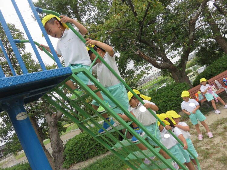 お友だちと一緒にいろいろな遊具へ移動しながら、元気いっぱい楽しんでいました