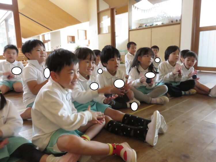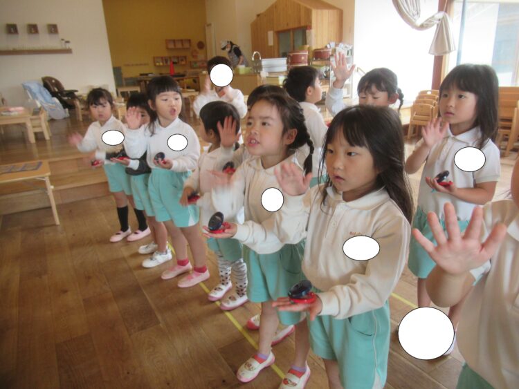音楽に合わせて頭をツンツンしたり、カスタネット鳴らして楽しみました!
