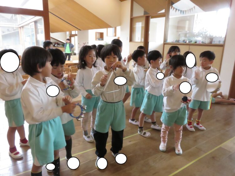 初めてが楽器で演奏をしましたよ!初めての楽器に興味津々!
