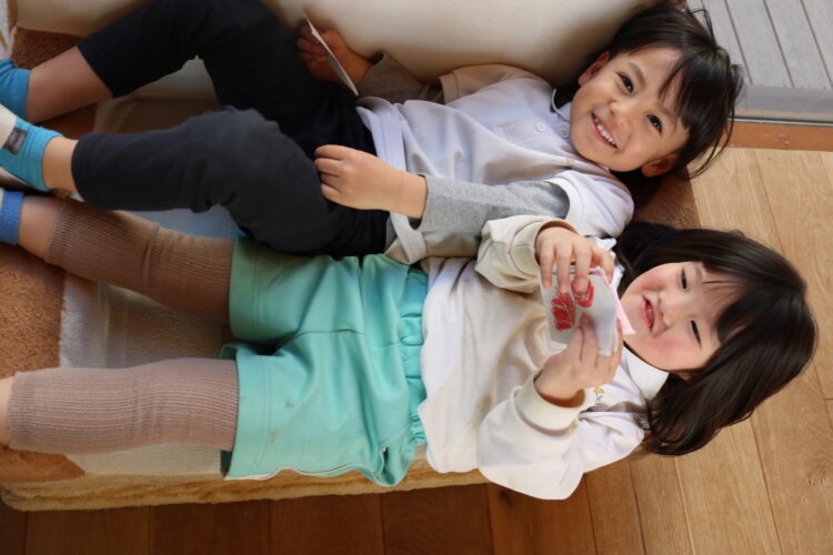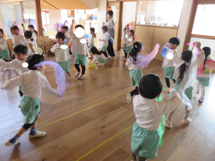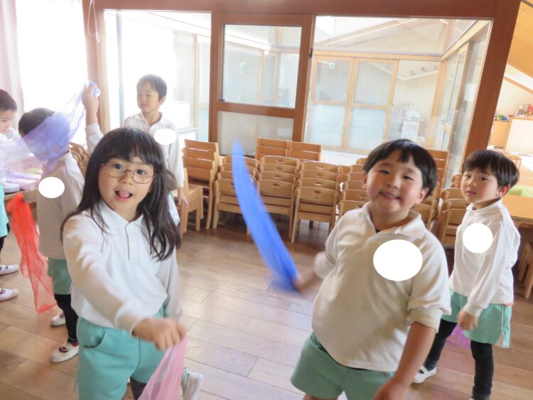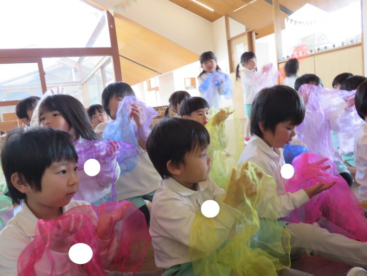 シフォンスカーフをお餅やコマ、凧にみたてて楽しみました!![]()