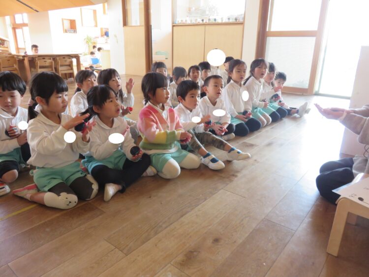 カスタネットは、「たきび」の曲にあわせて叩きました![]()