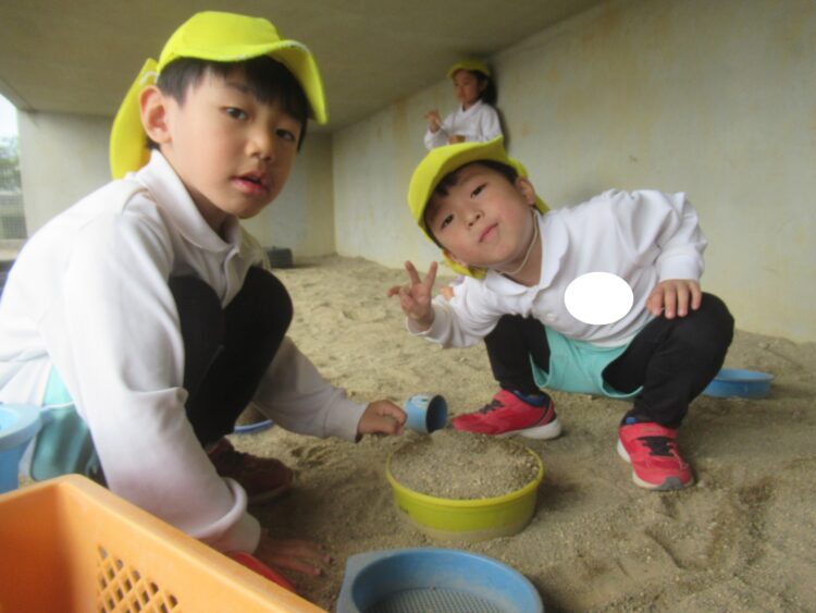 他にも、砂場でお芋ケーキを作ったり、型抜きをしてご飯を作ったり、長縄跳びをしたりと元気いっぱい遊びました![]()