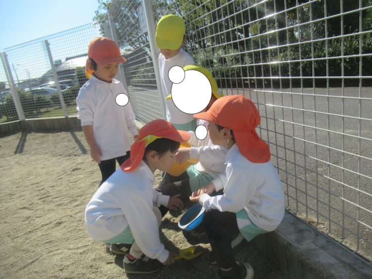 園庭では、虫探しに夢中の子がたくさん!