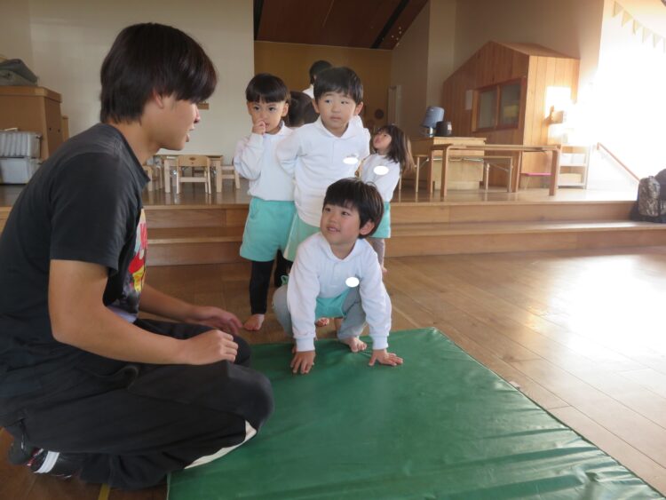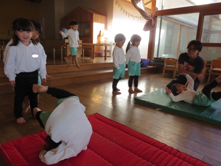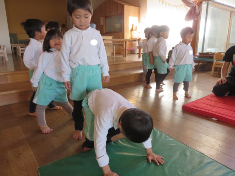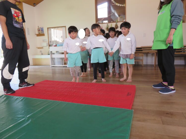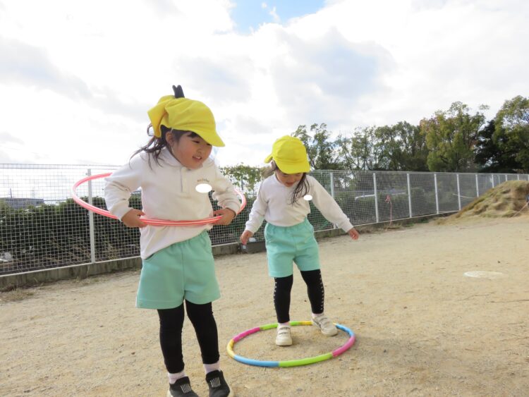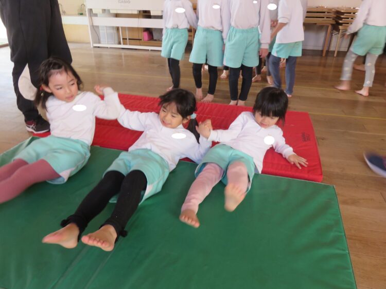 きらきらさんはレベルアップ3人で手を繋いで、息を合わせて回ることに挑戦です!!