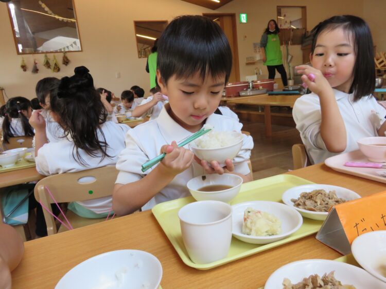 「見て!つかめたよ!」と言いながら嬉しそうに箸を使っていました