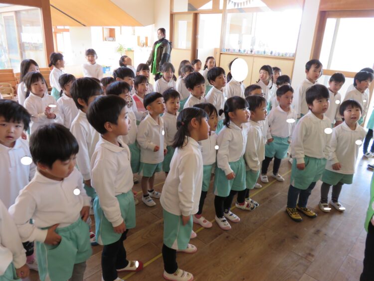 朝は「あわてんぼうのサンタクロース」や「We wish you a Christmas」「もちつき」の歌をみんなで歌いました