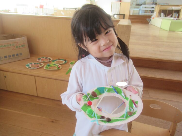 お部屋ではクリスマスリースを作っていましたよ🎄