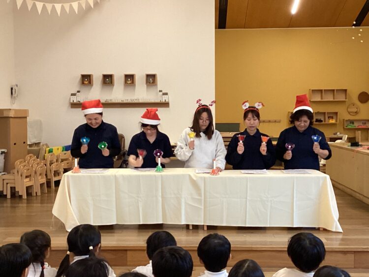 先生からハンドベルの演奏!みんな楽しそうに聞いてくれました!