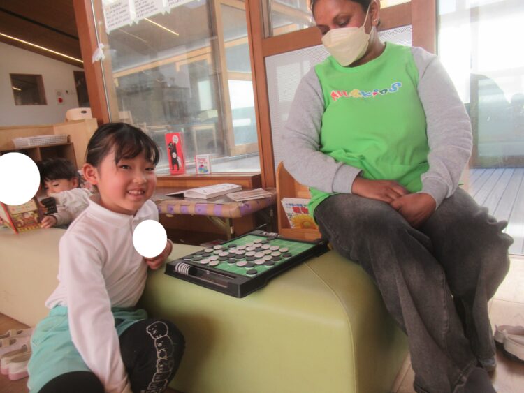 お部屋では先生とオセロを真剣勝負する子どももいます![]()
