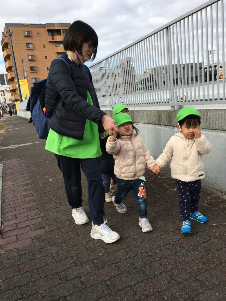 今日は、ばなな組さんもめろん組さんと手を繋いで沢山歩きました。