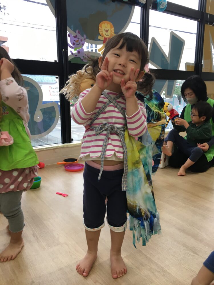 エプロンやおんぶ紐、お洋服を身につけて、はい、ポーズ📸