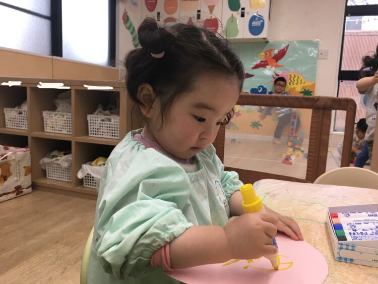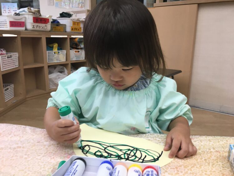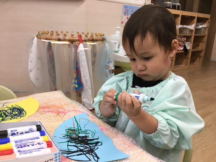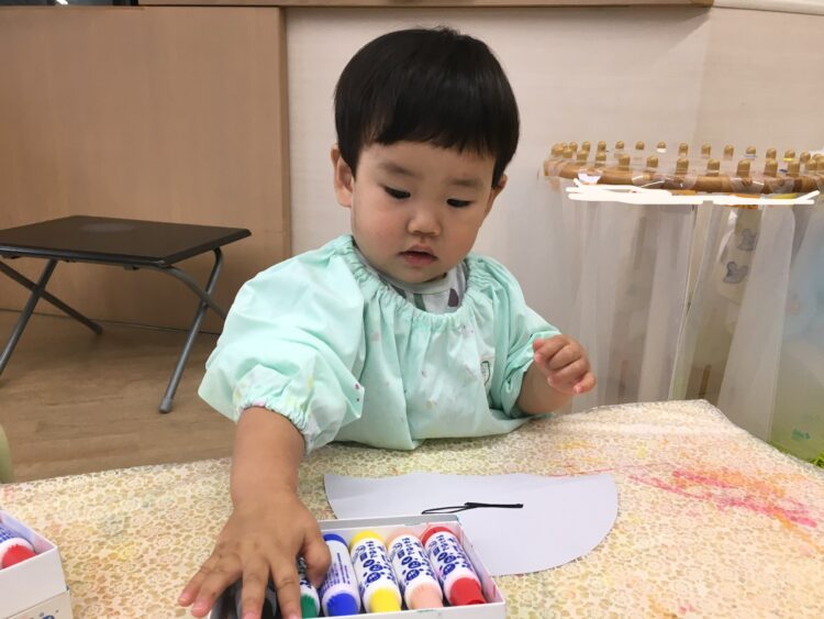 ブロックのコーナーとお絵描きのコーナーのどちらかを、子どもたちたち自身が選んで遊びました😊