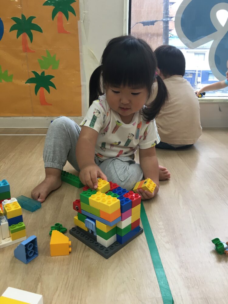 たくさんのブロックを使って組み立てたり、お友だちと一緒に作ったりと様々な姿が見られました。