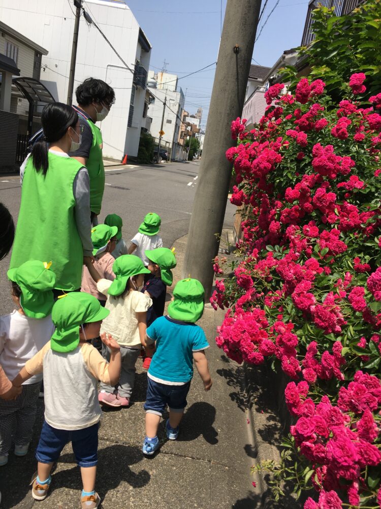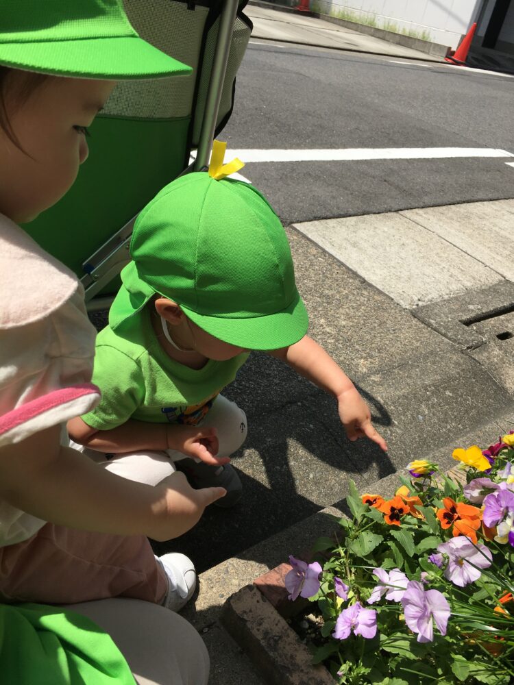 今日の散歩コースでは、アロエやきれいなお花など、たくさんの植物を見つけることができ、みんなでじっくり観察しました🌸