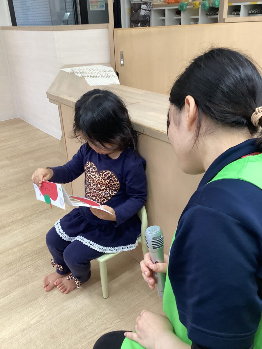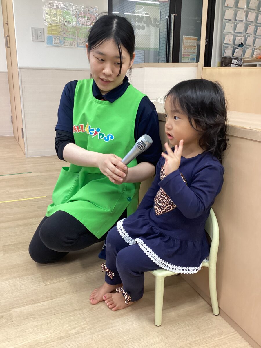 先生からインタビューを受けて、「好きな動物」や「好きな色」を元気良く答えていたね😆