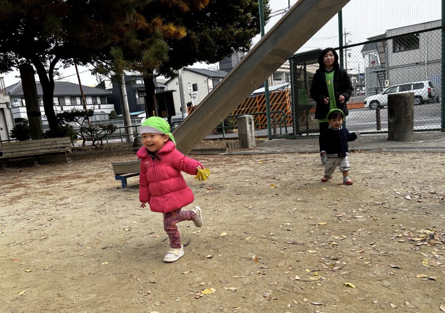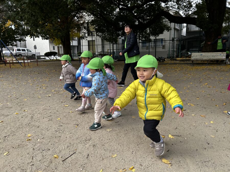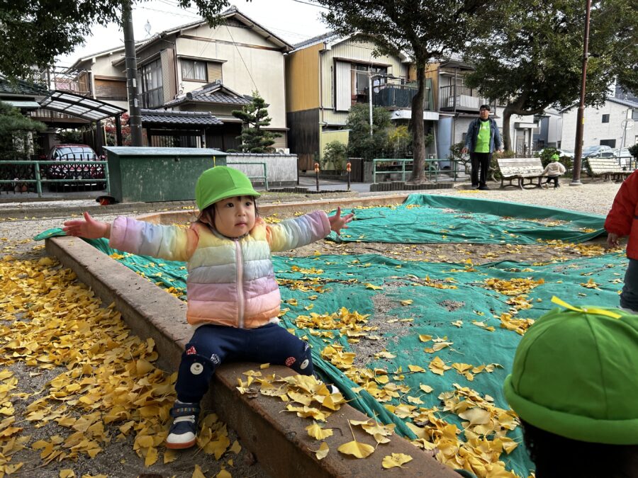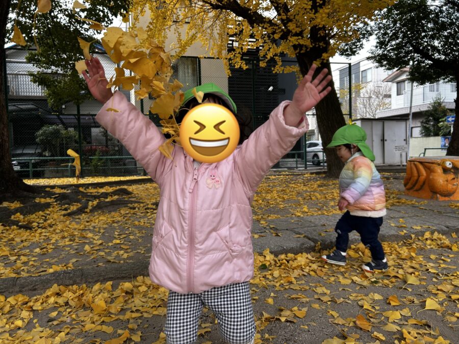 イチョウの葉っぱが人気で、しっぽ取りで走る時にも片手に持ちながら走る子や、舞いあげて遊んでいる子など遊び方も様々でした✨✨