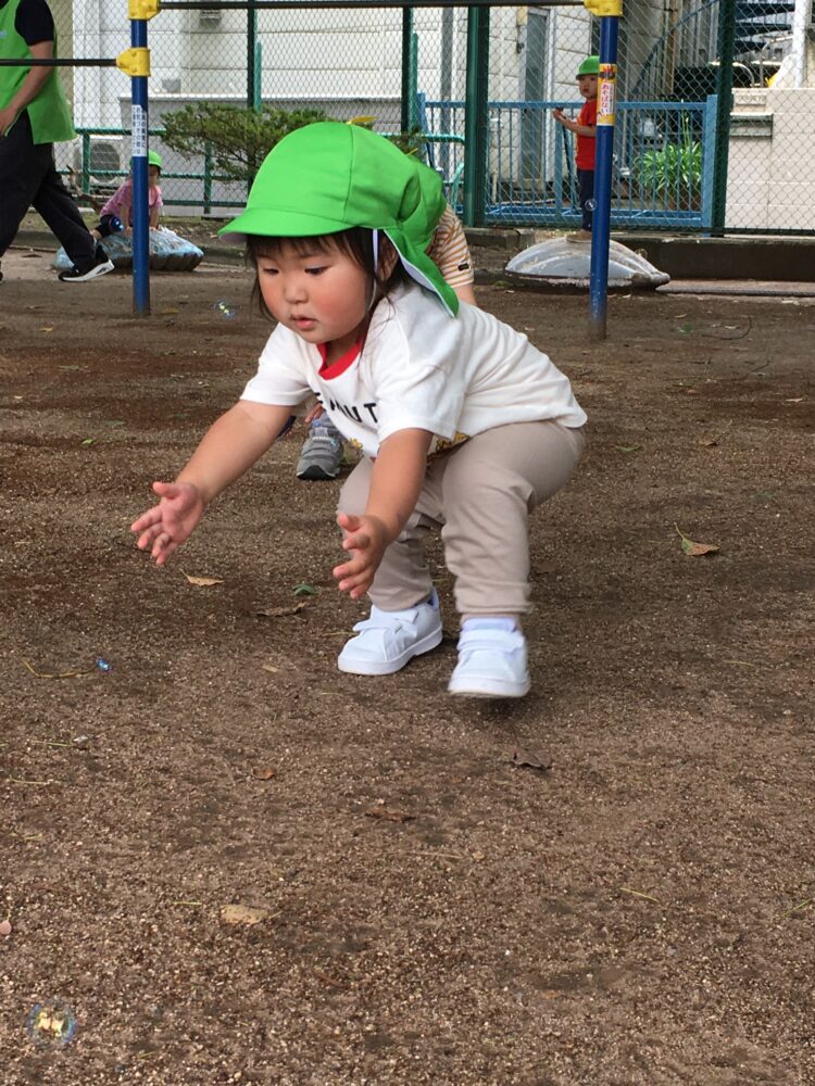 しゃぼん玉を捕まえるぞー!