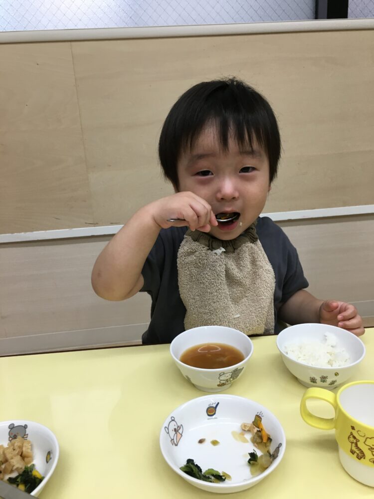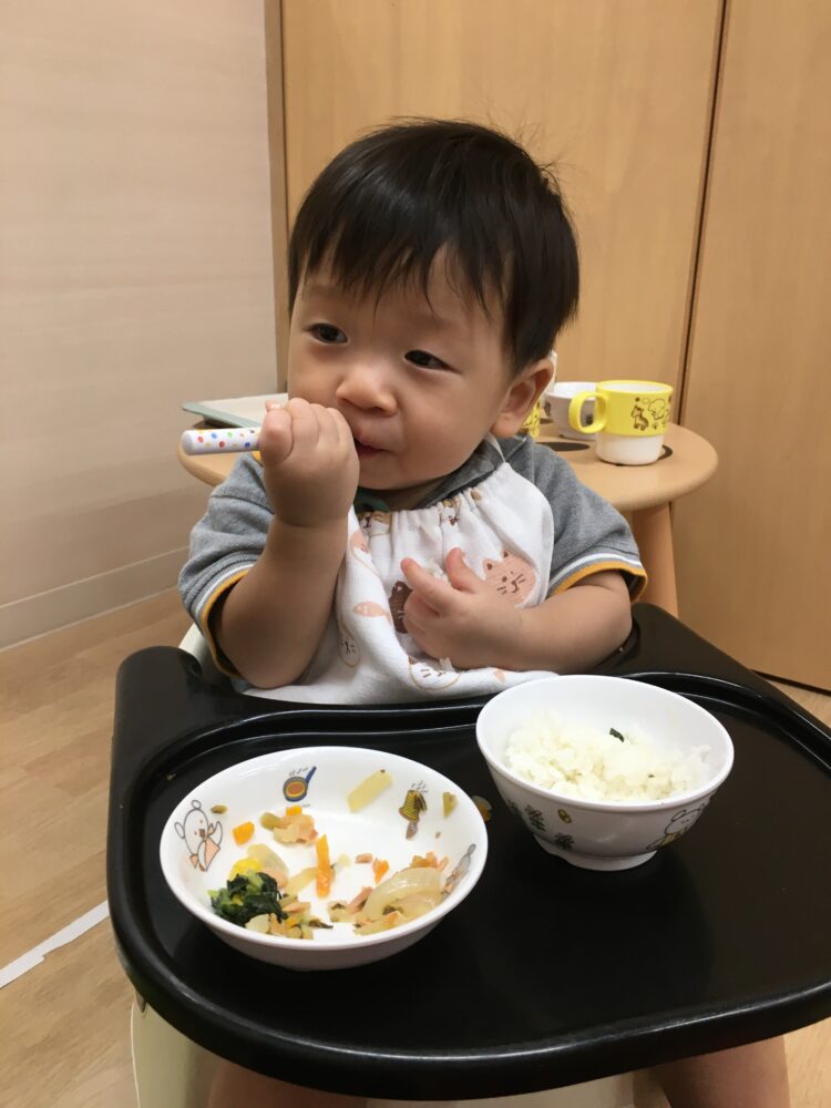 好き嫌いなく食べて、「おかわりください〜」と元気よく言っていたり、苦手な物があっても、頑張って一口食べる姿があったりしました。