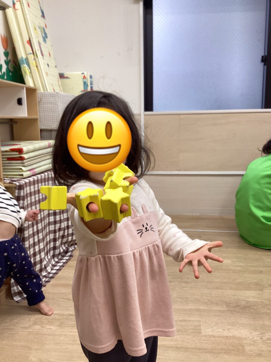紐通しのピースは指にはめて星だらけのおててに🤣