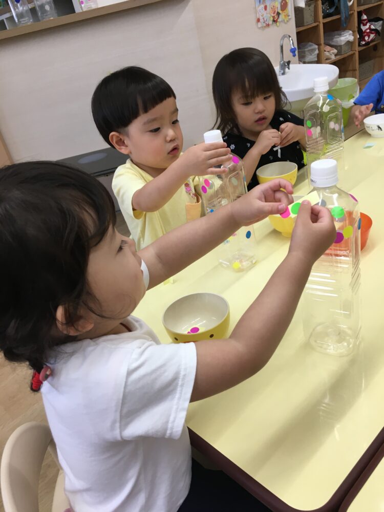 蓋にも貼っている子がいたり、ペットボトルの中にシールを入れる子も‼️(笑)